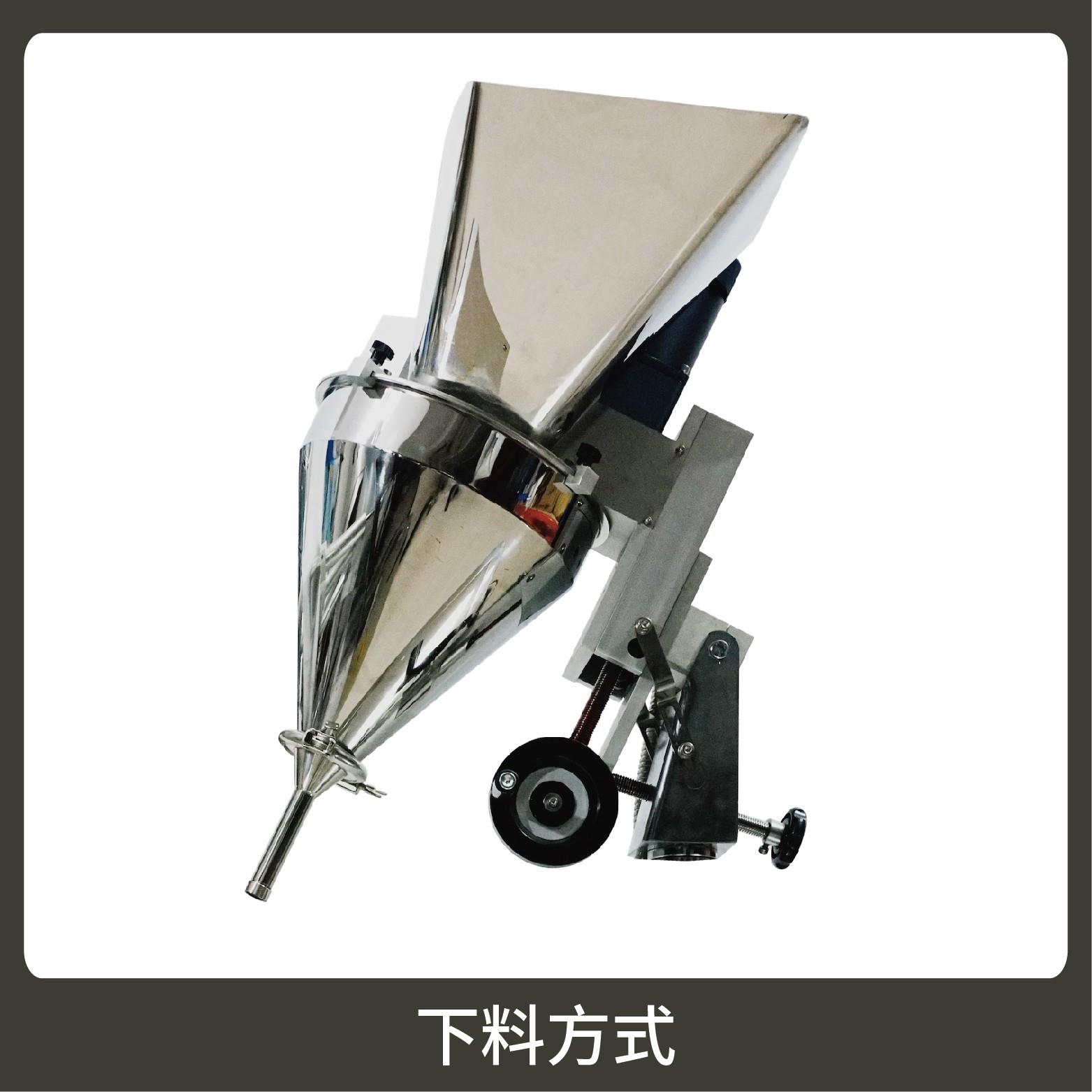 2、包裝流程全自動(dòng),無(wú)需人工操作??筛鶕?jù)充填物料的性質(zhì)選配不同的下料結(jié)構(gòu)。