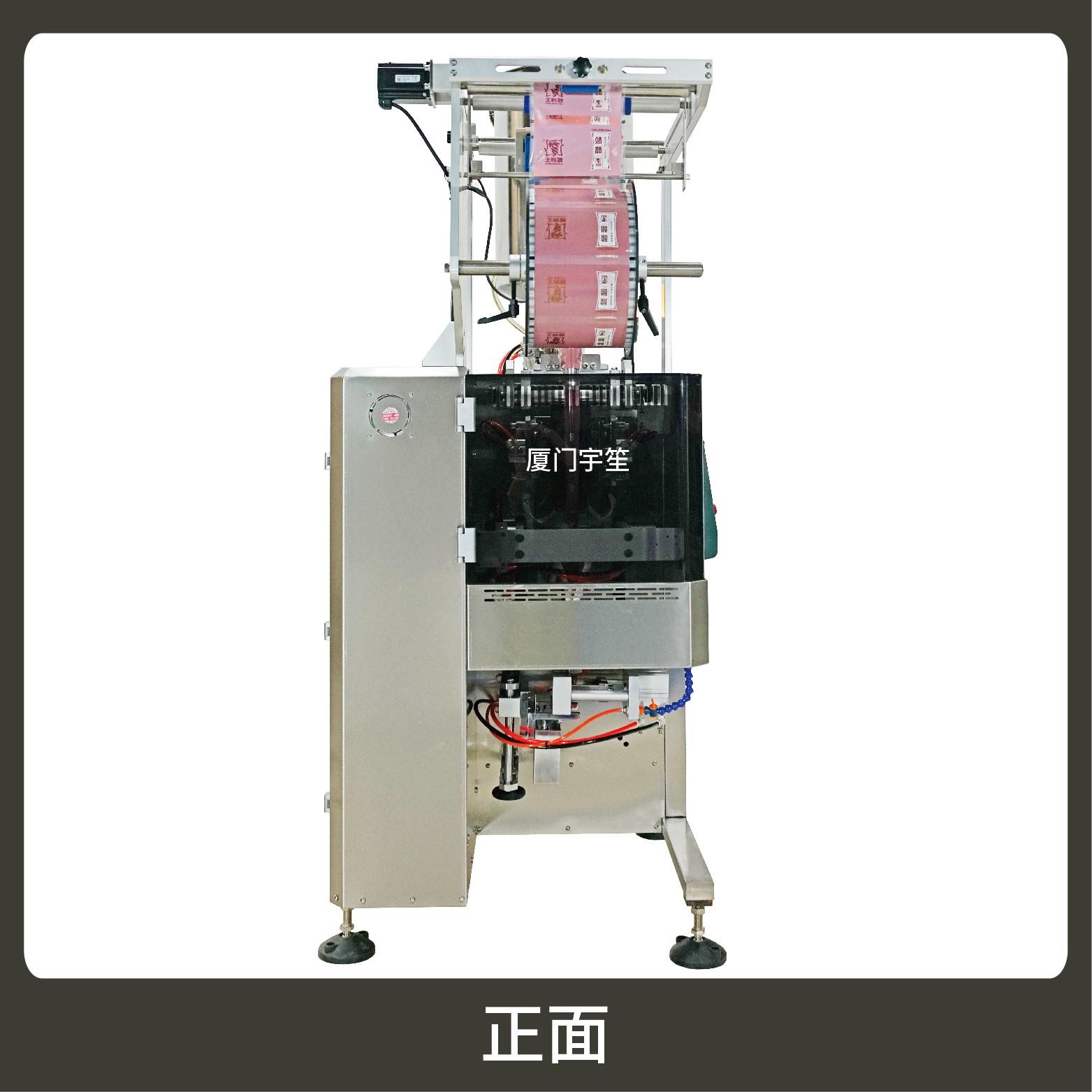 功能:可自動完成下料、制袋、計量、充填、封合、分切、計數(shù),可根據(jù)需求配置打碼功能。采用觸摸屏操作PLC控制,驅(qū)動步進(jìn)電機(jī)控制袋長,性能穩(wěn)定、調(diào)整方便、檢測準(zhǔn)確。