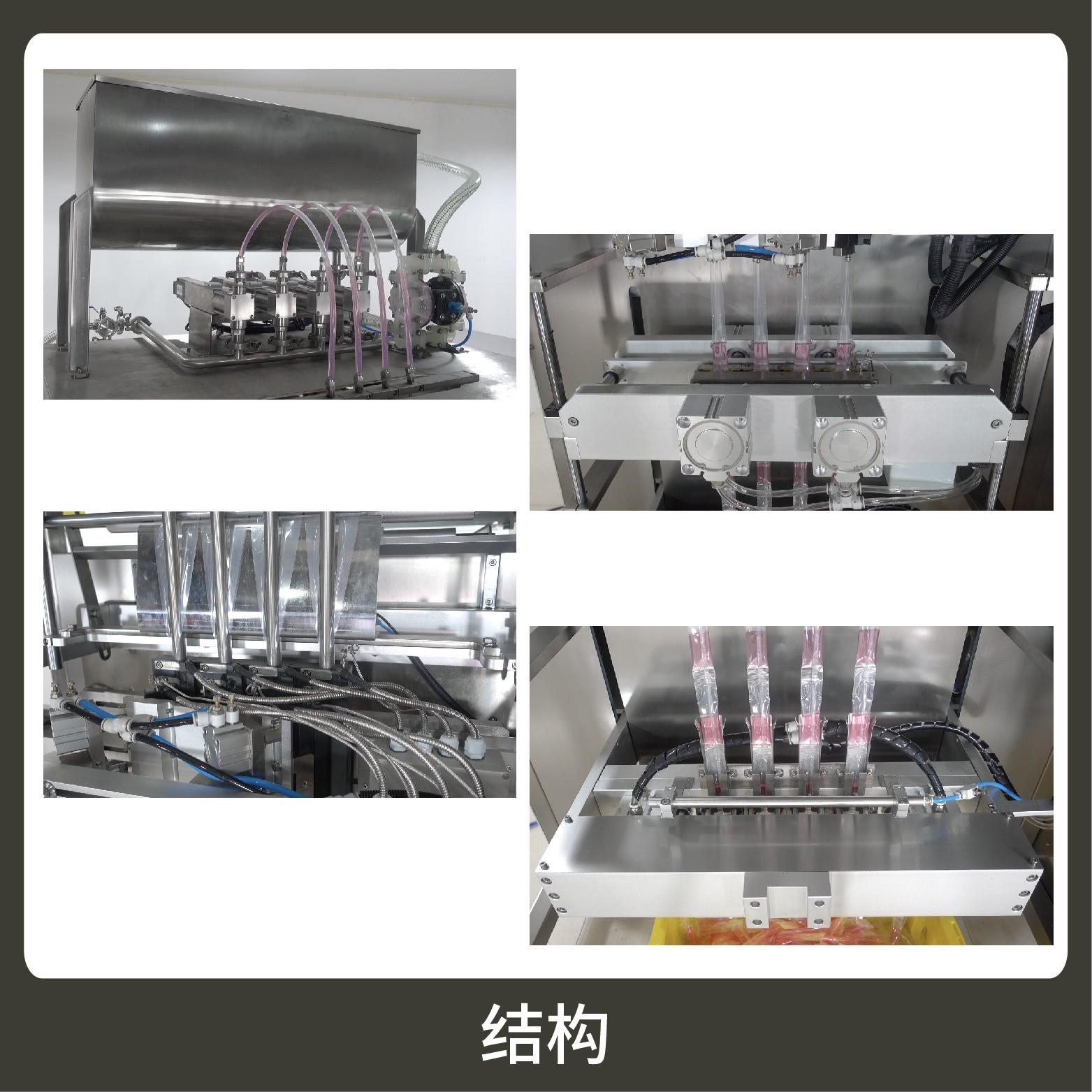 適用于各行業(yè)中酵素、果汁、漱口水、洗護(hù)用品、染發(fā)劑、化妝品小樣等醬料、液體物品的多列異形袋計(jì)量包裝。
